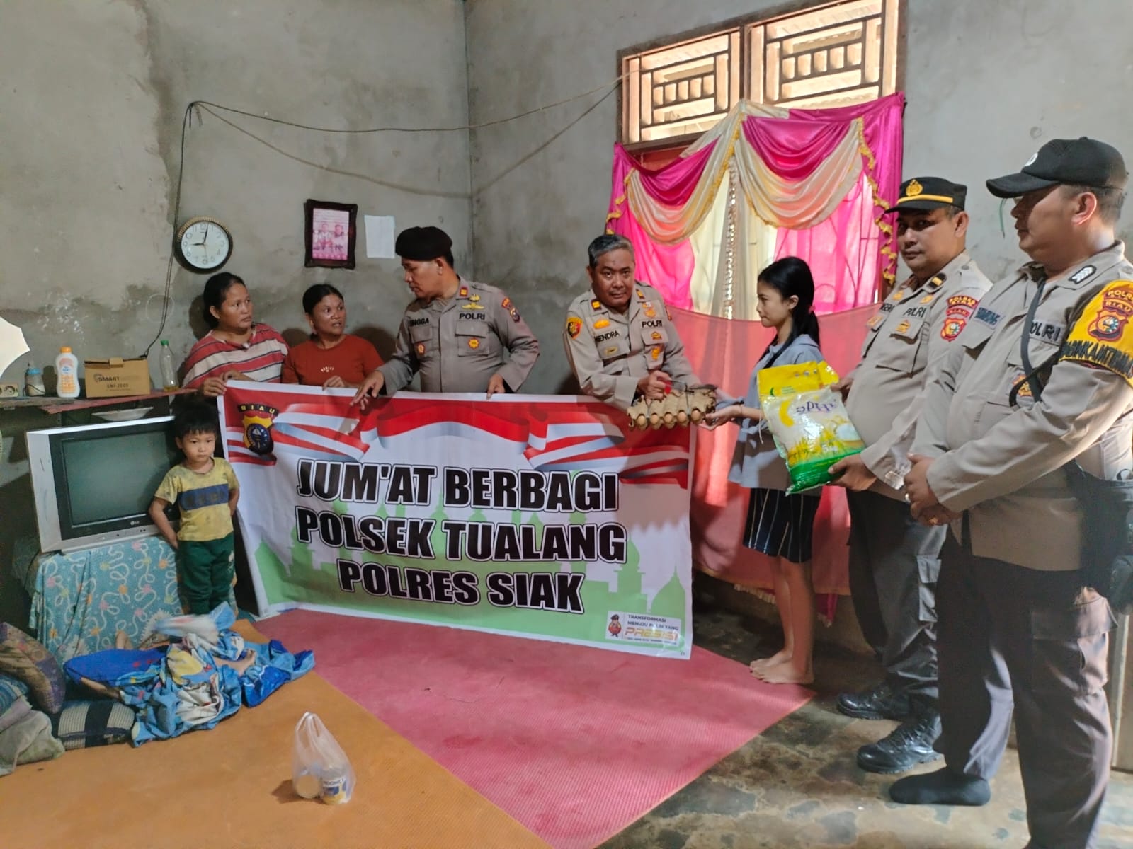 *Berikan Bantuan Sembako Saat Jumat Berkah, Polsek Tualang Kunjungi Anak Yang Menderita Lumpuh di Kp. Ps. Timur*