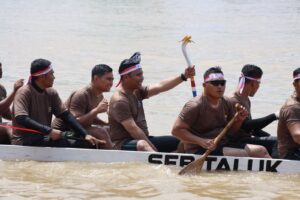 [ Kuantan Singingi ], Muaramars.com — Ternyata selain Bupati Kuantan Singingi (Kuansing), Drs H Suhardiman Amby Ak MM yang viral sebelumnya ikut serta menjadi atlet pacu jalur tahun 2023 disejumlah gelanggang, kini Kapolres Kuansing AKBP Pangucap Priyo Soegito SIK MH juga menjadi “Timbo Ruang” pada Pacu Jalur Eksibisi Tahun 2023 di Tepian Narosa Teluk Kuantan, Sabtu (26/08/2023) pagi.