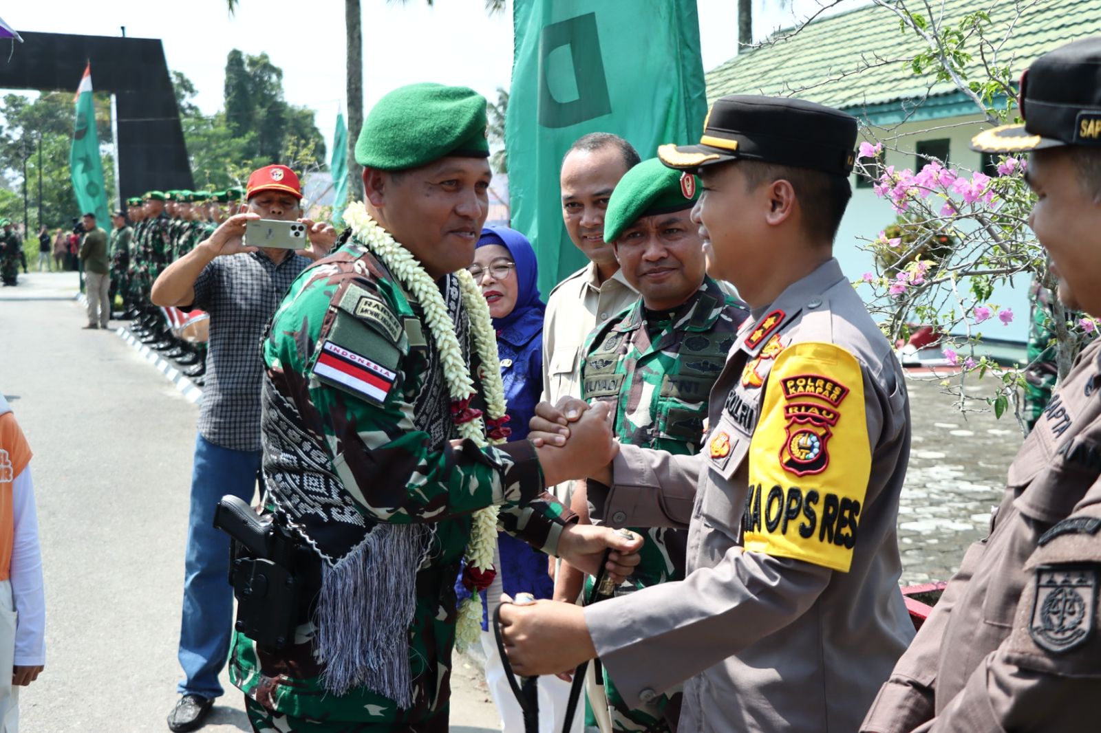 Kapolres Kampar, Sambut Satgas Pamtas RI-PNG Batalyon 132/BS di Mako Yonif 132/ BS Salo