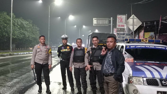 [ TAMBANG ], muaramars.com—– Jajaran Polsek Tambang kali ini melaksanakan patroli malam dan penjagaan di areal pintu masuk tol Sungai Pinang guna antisipasi balap liar yang dilaksanakan oleh anak anak muda disaat malam minggu yaitu Sabtu (9/9/2023) sekira pukul 00.00 WIB.