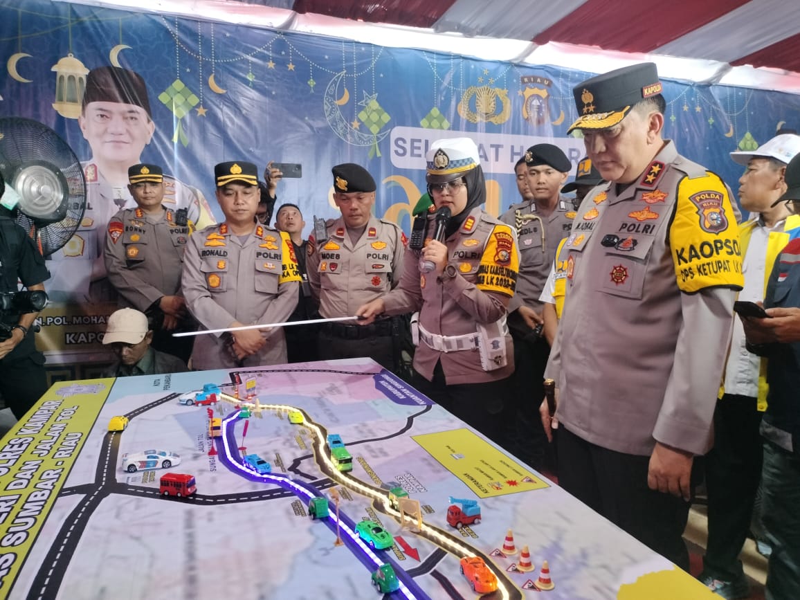 Dalam kunjungan ini, Kapolda Riau mendengarkan langsung penjelasan dari Kasat Lantas Polres Kampar AKP Viola Dwi Anggraini mengenai pengamanan arus Mudik dan Arus balik lebaran di jalur Lintas Barat terutama di Kabupaten Kampar.