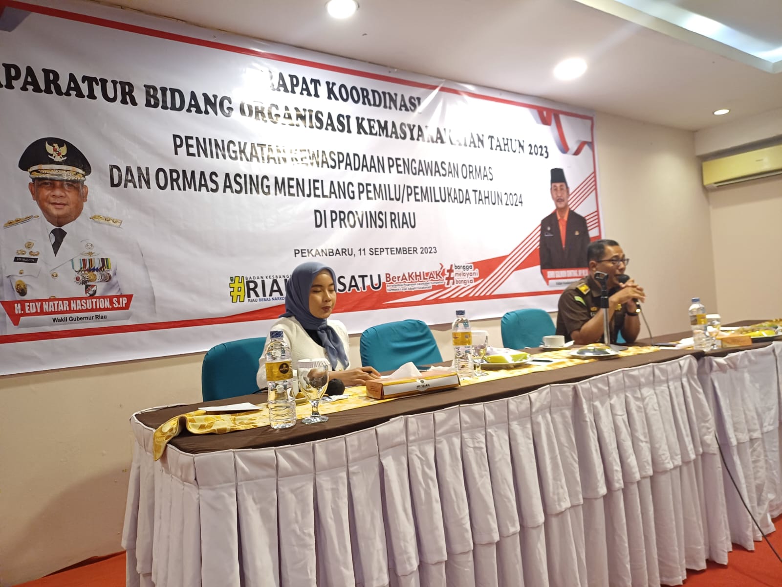[ Pekanbaru ], muaramars.com—- Bahwa pada hari Senin tanggal 11 September 2023 sekira pukul 09.30 Wib Bertempat di Hotel Mutiara Merdeka Kota Pekanbaru, Kasi B Bidang Intelijen Kejaksaan Tinggi Riau Ali Rahim, S.H., M.H menjadi narasumber pada Rapat Koordinasi Aparatur Bidang Organisasi Kemasyarakatan Tahun 2023 dengan Tema “Peningkatan Kewaspadaan Pengawasan Ormas dan Ormas Asing Menjelang Pemilu/Pemilukada Tahun 2024 di Provinsi Riau”.