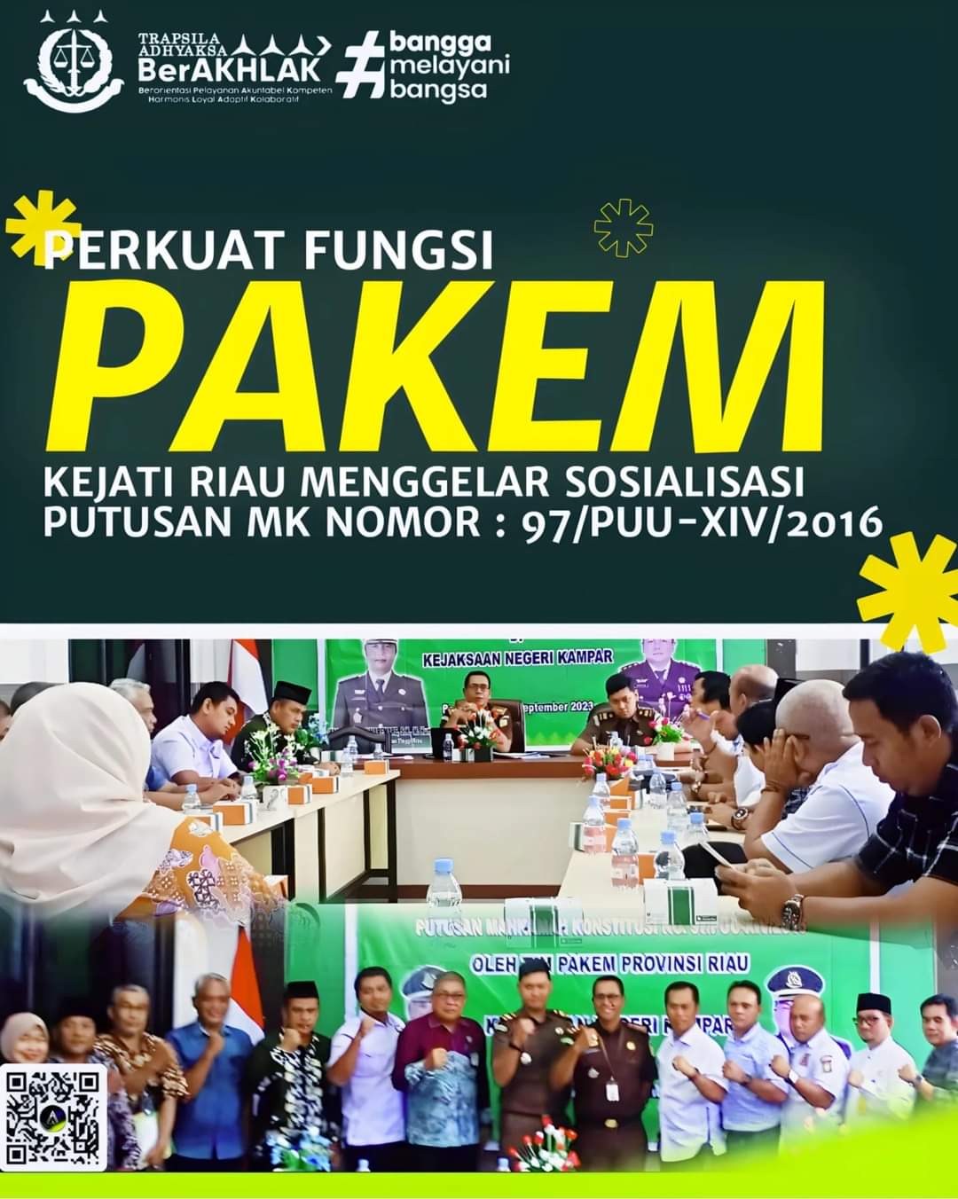 [ Pekanbaru ], muaramars.com—- Bahwa pada hari Rabu tanggal 20 September 2023 sekira pukul 10.00 Wib bertempat di Aula Kantor Kejaksaan Negeri Kampar, Kasi B bidang Intelijen Kejaksaan Tinggi Riau Ali Rahim, SH., MH menggelar Sosialisasi Putusan Mahkamah Konstitusi Nomor 97/PUU-XIV/2016