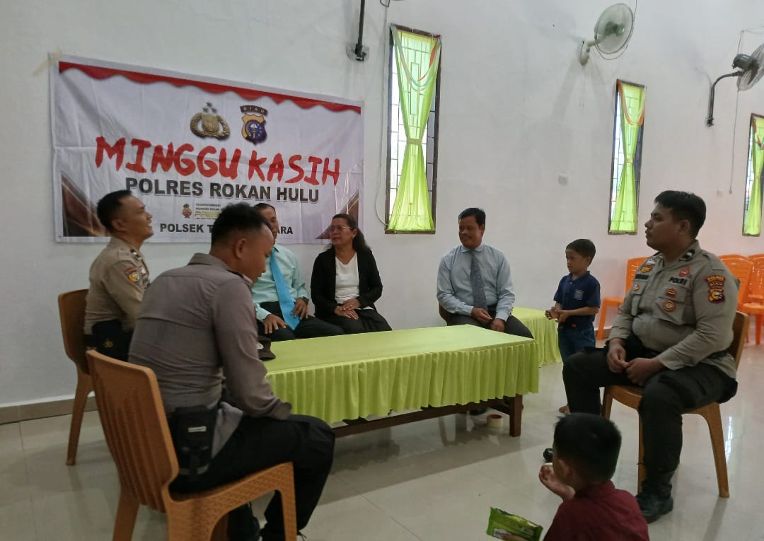 ROKAN HULU, Muaramars.com — Pelaksanaan kegiatan Minggu Kasih, Personil Polsek Tambusai Utara Polres Rokan Hulu (Rohul) Minggu, 12 Mei 2024 Pukul  10.10 WIB sampai Selesai di Gereja GBI Desa Tambusai Utara,