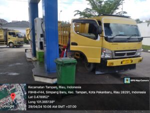 Saat melihat kondisi mobil Truk bak Kayu dan mobil Dantruk bak jungkang mengisi di spbu garuda sakti Km 2 panam, redaksi muaramars.com konfirmasi pengawas dari spbu bernama Febri