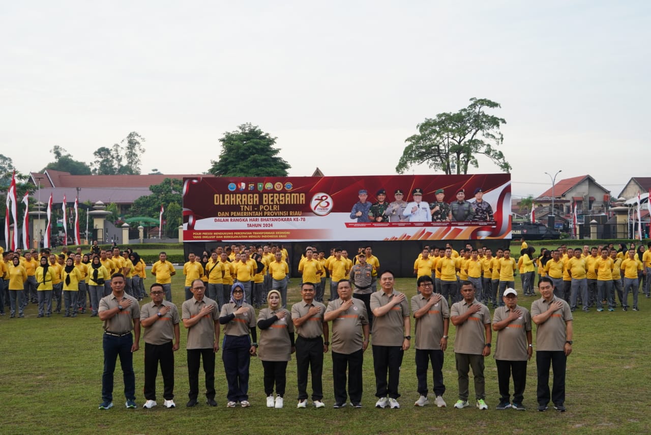 Pekanbaru, [ MuaraMars.com] — Dalam rangka memeriahkan hari Bhayangkara ke 78, Polda Riau menggelar kegiatan olahraga bersama TNI-Polri dan Pemerintah Provinsi Riau Jum’at (28 Juni 2024).
