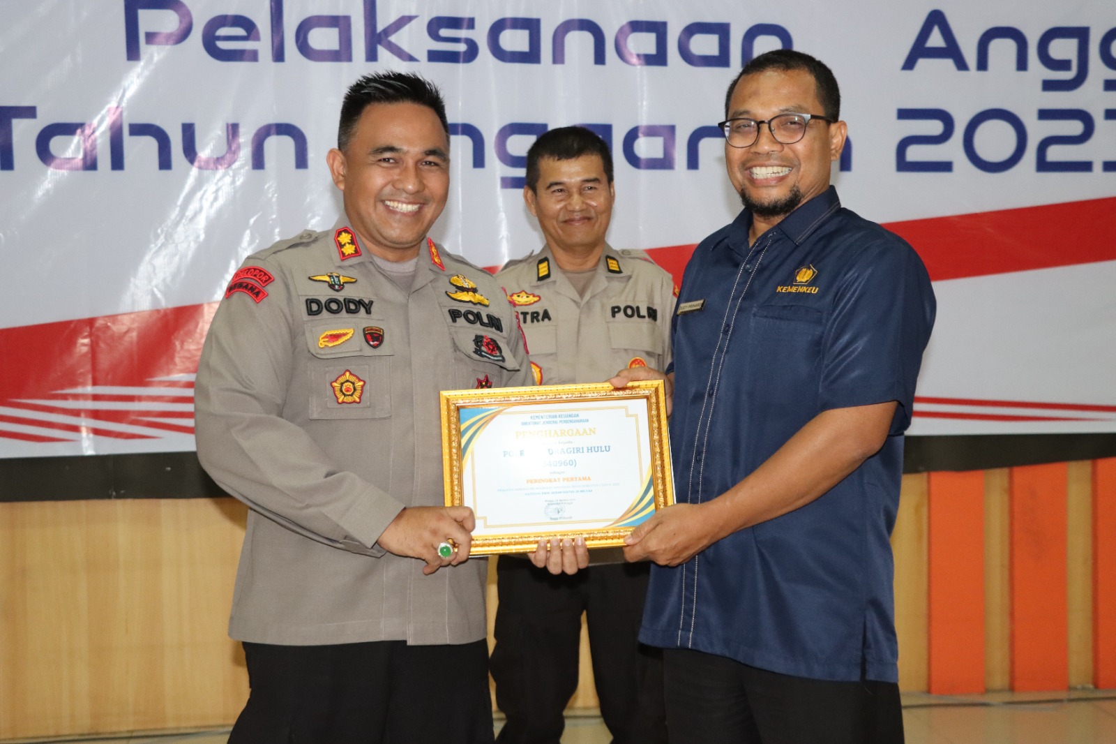 Penghargaan tersebut diserahkan langsung oleh Kepala KPPN Rengat, Dodi Prihardi kepada Kapolres Inhu, AKBP Dody Wirawijaya, S.I.K ketika acara Evaluasi Kinerja Pelaksana Anggaran semester 1 tahun anggaran 2023 di gedung Dang Purnama, Kota Rengat, Selasa 29 Agustus 2023.