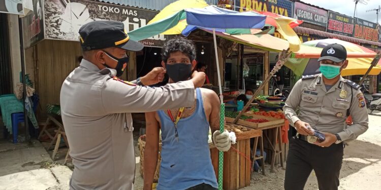 Sebanyak 150 pcs masker sebagai bentuk kepedulian Kepolisian terhadap masyarakat terkait wabah Covid-19 dibagikan kepada masyarakat dan sekaligus menyampaikan himbauan kepada masyarakat, agar selalu mematuhi protokol kesehatan sesuai anjuran pemerintah.
