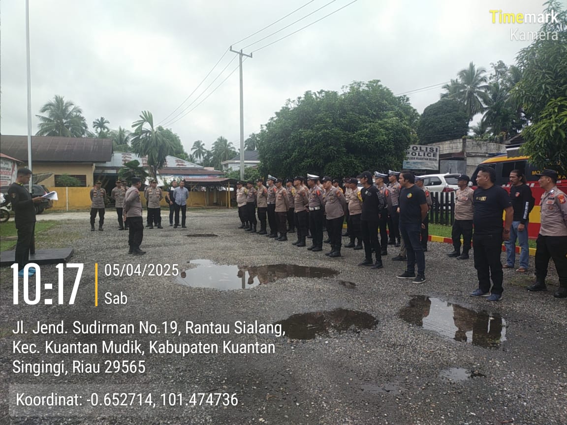 Polsek Kuantan Mudik Apel Pengamanan Festival Perahu Baghanduang 2025 Dalam Rangka Ops Ketupat Lancang Kuning 2025