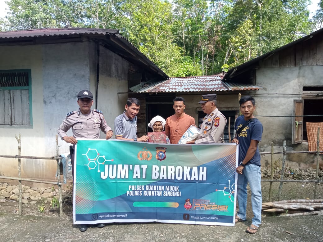 [ Kuantan Mudik ], muaramars.com—-Pada tanggal 22 September 2023 Personel Polsek Kuantan Mudik Kabupaten Kuantan Singingi, Riau, melaksanakan kegiatan Jumat Barokah dengan memberikan bantuan berupa sembako masyarakat kepada kurang mampu di wilayah hukumnya, Jumat (22/9/2023).