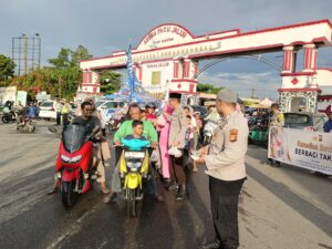 “Tujuan dari kegiatan ini adalah untuk menjalin silaturahmi dengan masyarakat serta memberikan himbauan kepada masyarakat pengguna jalan agar selalu berhati-hati saat berkendaraan,” tandas AKP Feri.