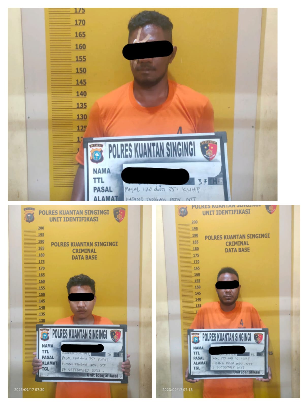 Selanjutnya dilakukan penangkapan pada Sabtu 17 September 2023, sekira pukul 22.00 WIB, Tim Opsnal Polres Kuansing melakukan pemeriksaan tersangka YN mengakuinya melakukan penganiayaan bersama rekannya R dan FS, dan setelah digelarkan ketiga tersangka ditangkap dan diamankan di Polres Kuansing,” pungkas AKP Linter mengakhiri keterangannya.