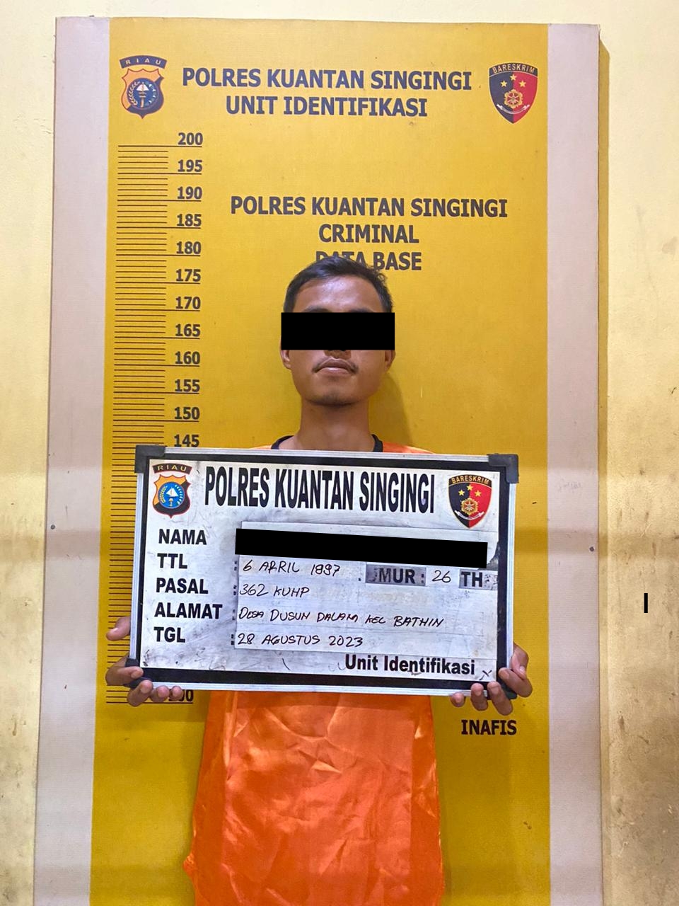 Kapolres Kuansing AKBP Pangucap Priyo Soegito, S.I.K., M.H., melalui Kasat Reskrim Polres Kuansing AKP Linter Sihaloho, S.H.,M.H, mengatakan, “pelaku K (26) ditangkap terkait dugaan curanmor dan berdasarkan informasi dari beberapa orang warga dan pelapor datang melapor ke Polres Kuansing, kemudian dilakukan pemeriksaan oleh penyidik Sat Reskrim polres kuansing,” ujar AKP Linter.
