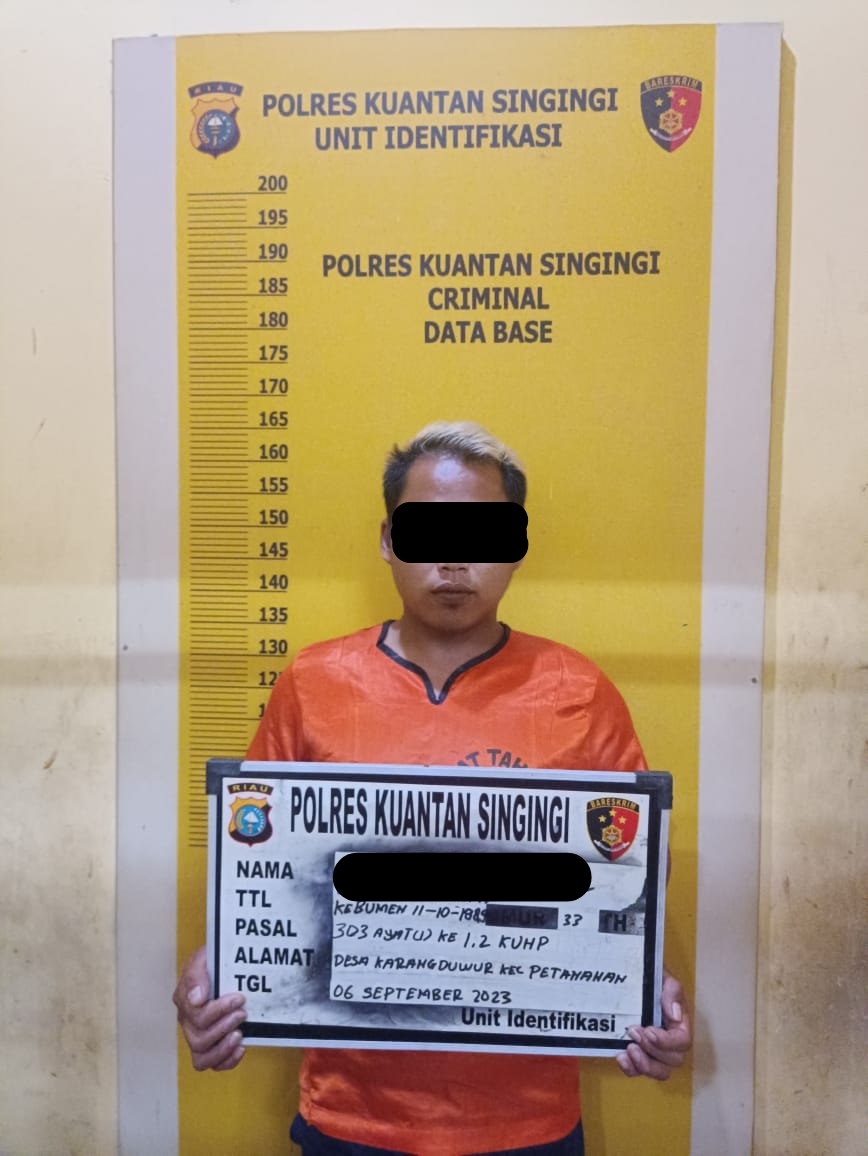 Kapolres Kuansing AKBP. Pangucap Priyo Soegito.S.I.K.,M.H melalui Kasat Reskrim AKP. Linter Sihaloho.S.H.,M.H menerangkan bahwa penangkapan pelaku judi online tersebut dilakukan setelah sebelumnya kami mendapatkan informasi dari masyarakat tentang adanya permainan judi online dilokasi angkringan IZAL di Desa Sumber Jaya Kec. Singingi Hilir Kab. Kuansing , ucapnya (6/9/2023).