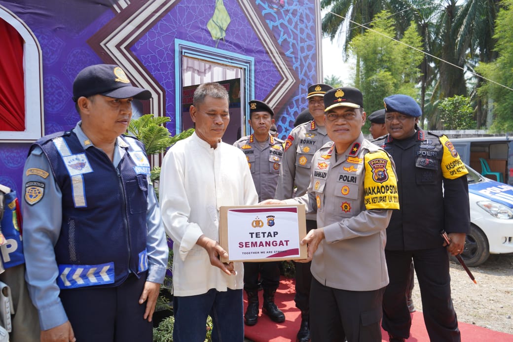Selanjutnya Wakapolda Riau beserta rombongan menyerah bantuan tali asih kepada petugas yang melakukan pengamanan di Posko Terpadu Ops Ketupat Lancang Kuning Polres Rohil.